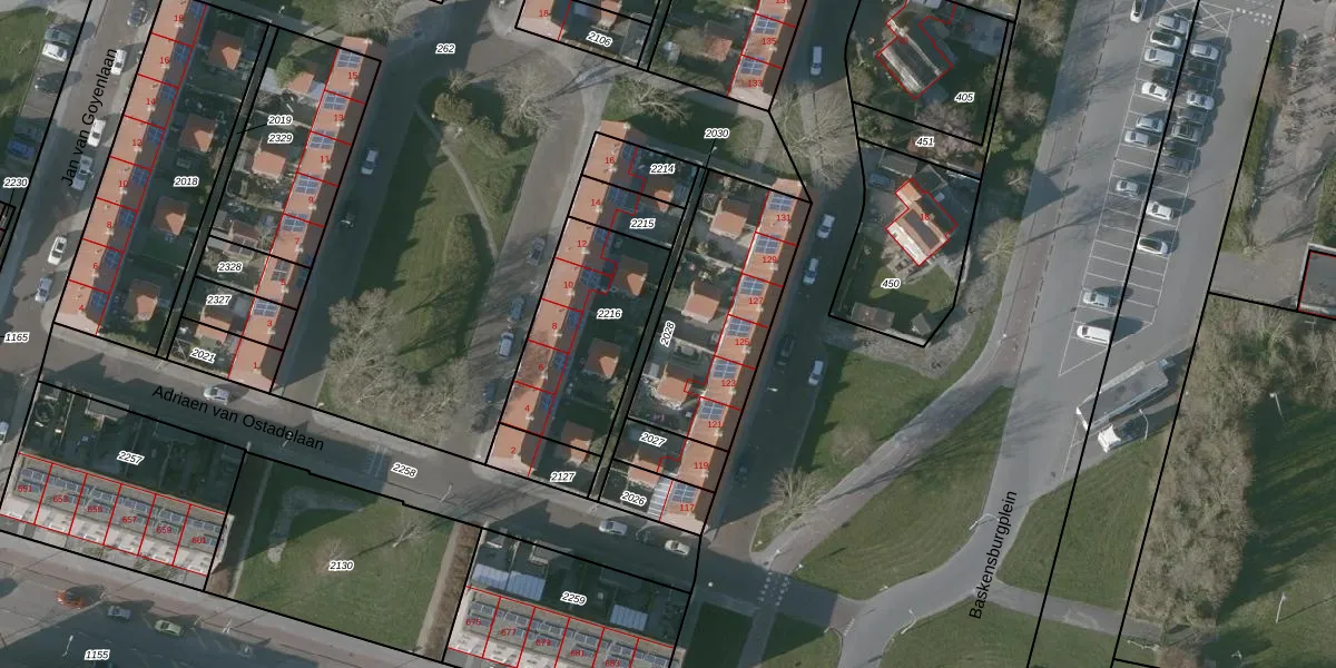 Gebruik de zoekbalk of klik op een perceel om informatie over het perceel te bekijken.