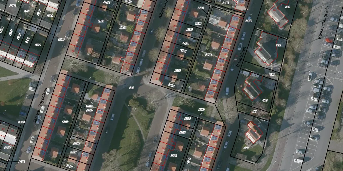 Gebruik de zoekbalk of klik op een perceel om informatie over het perceel te bekijken.