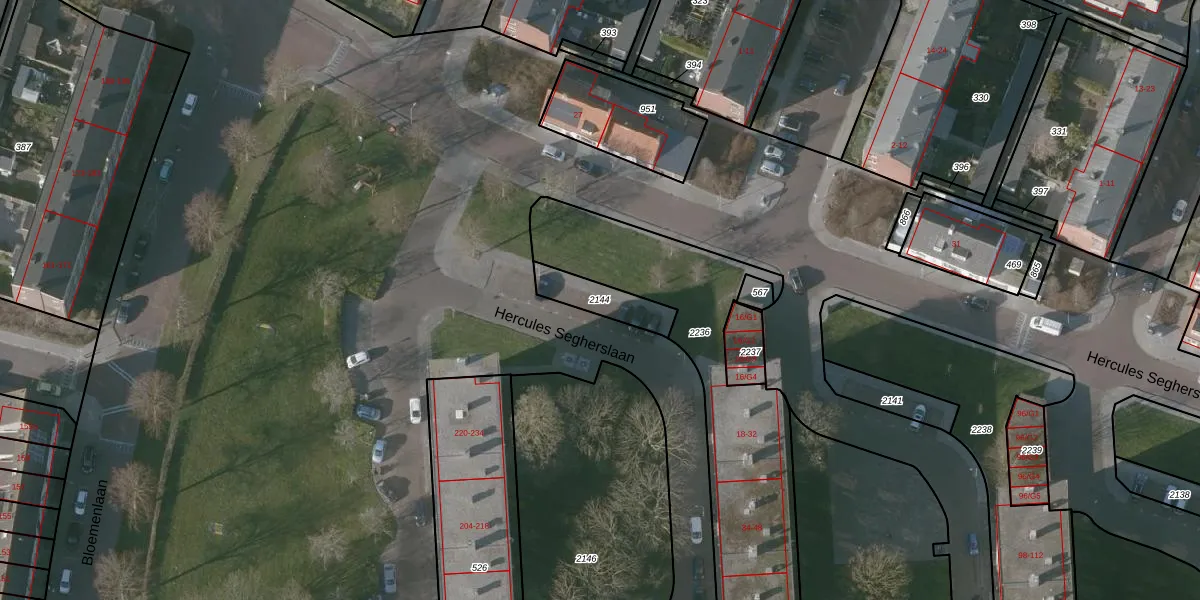 Gebruik de zoekbalk of klik op een perceel om informatie over het perceel te bekijken.