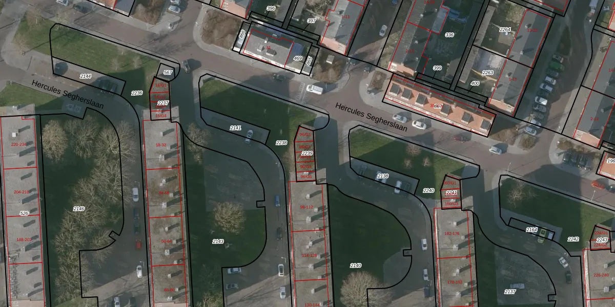 Gebruik de zoekbalk of klik op een perceel om informatie over het perceel te bekijken.