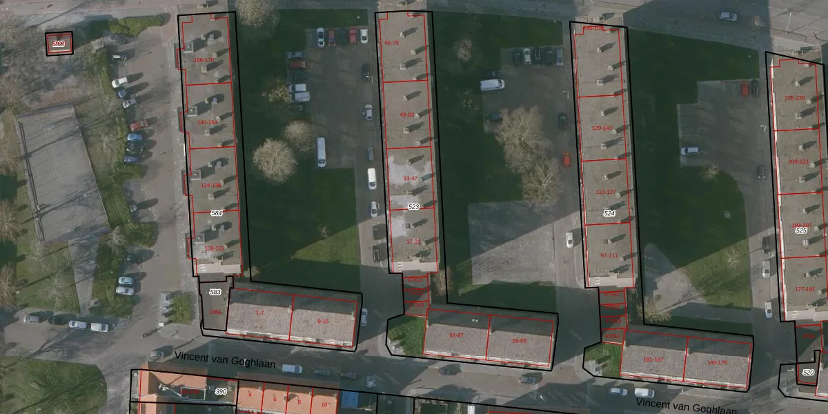 Gebruik de zoekbalk of klik op een perceel om informatie over het perceel te bekijken.