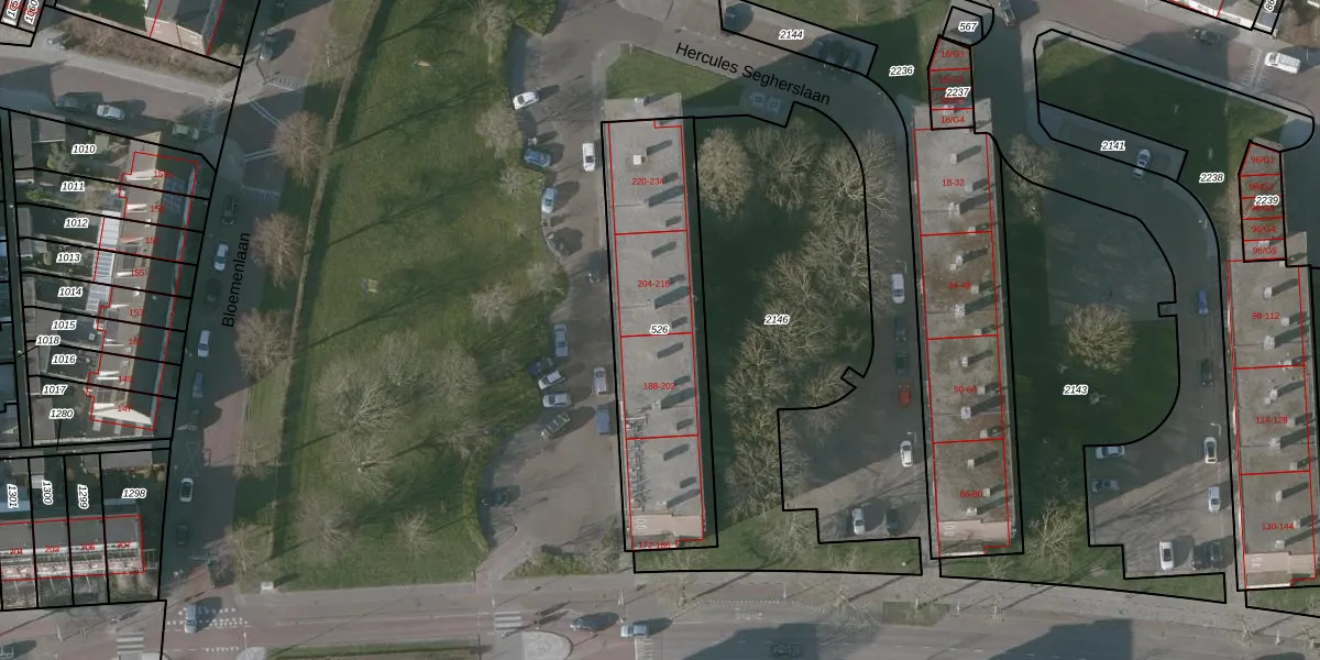 Gebruik de zoekbalk of klik op een perceel om informatie over het perceel te bekijken.