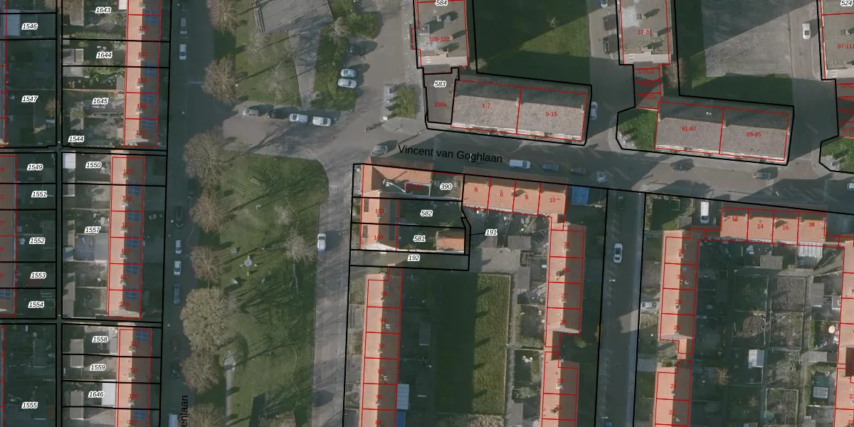 Gebruik de zoekbalk of klik op een perceel om informatie over het perceel te bekijken.
