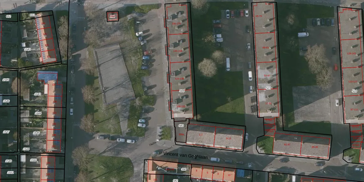 Gebruik de zoekbalk of klik op een perceel om informatie over het perceel te bekijken.