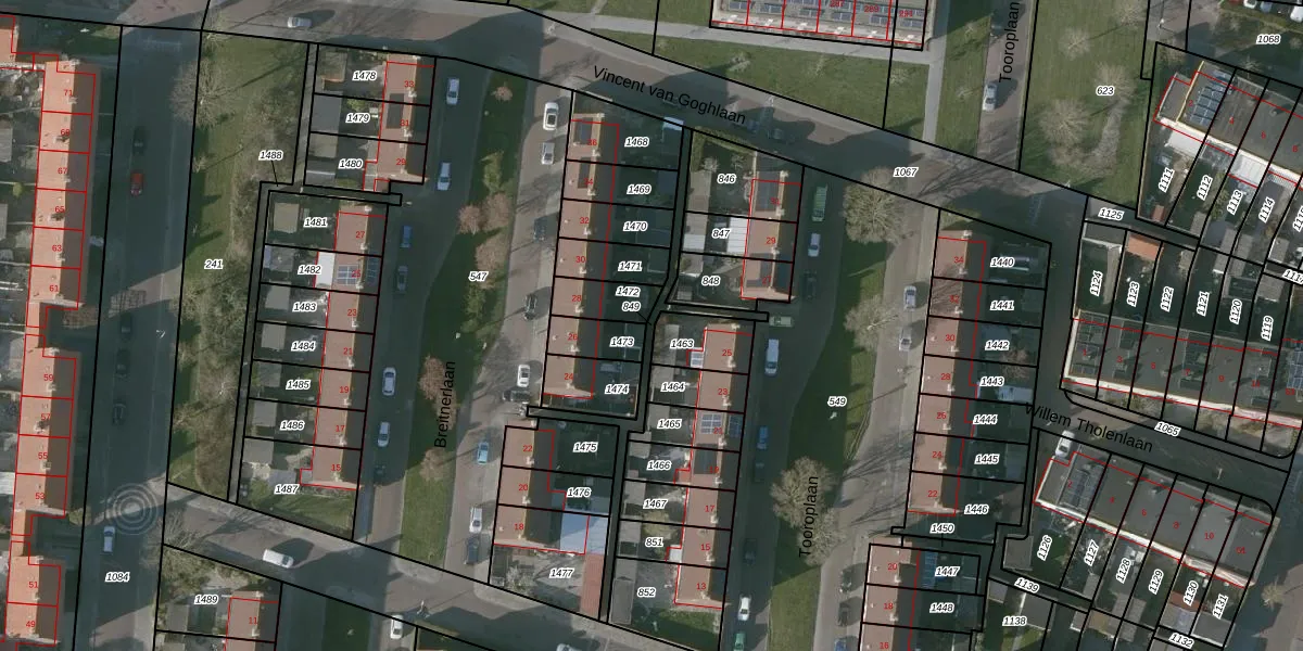 Gebruik de zoekbalk of klik op een perceel om informatie over het perceel te bekijken.
