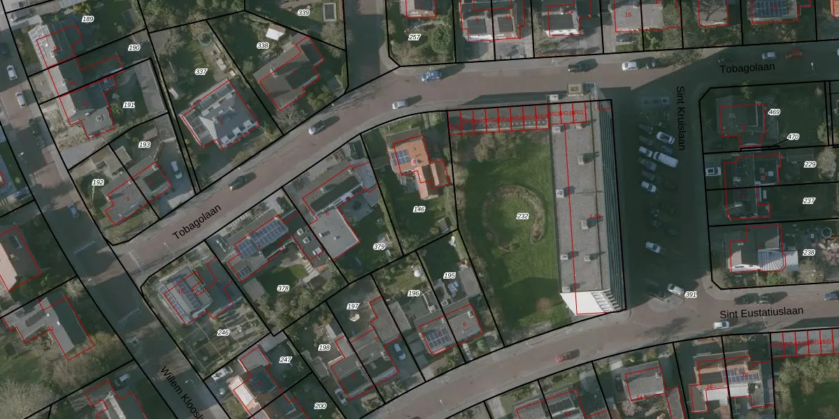 Gebruik de zoekbalk of klik op een perceel om informatie over het perceel te bekijken.