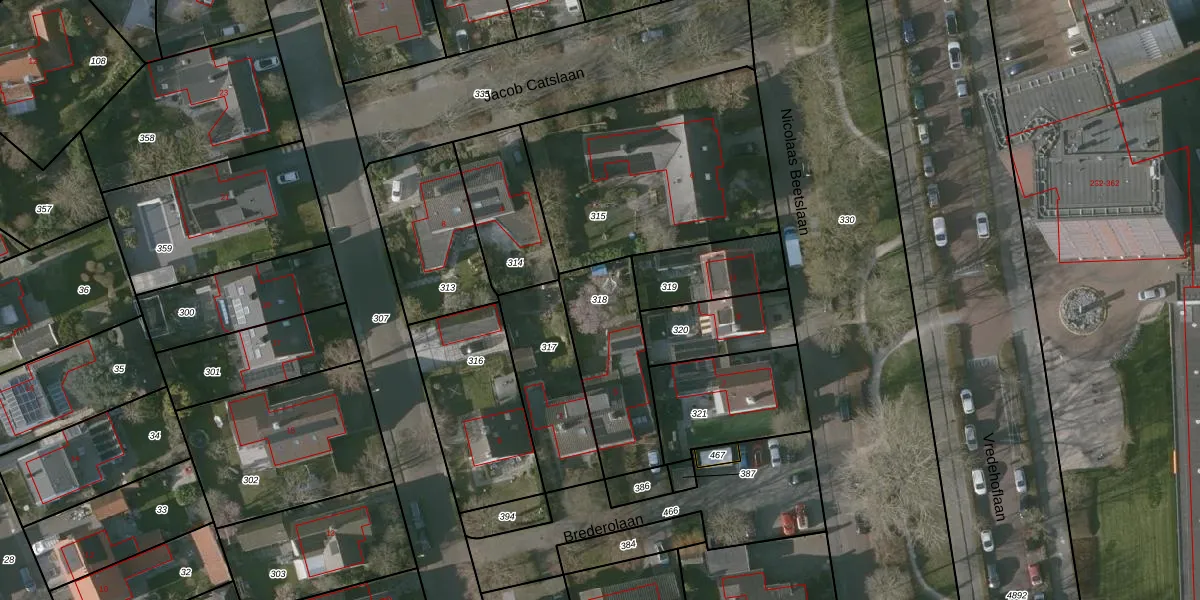 Gebruik de zoekbalk of klik op een perceel om informatie over het perceel te bekijken.