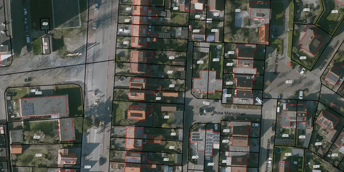 Gebruik de zoekbalk of klik op een perceel om informatie over het perceel te bekijken.