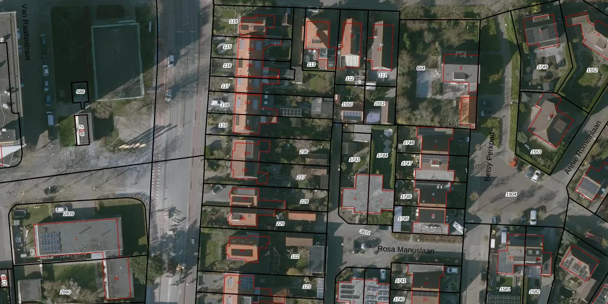 Gebruik de zoekbalk of klik op een perceel om informatie over het perceel te bekijken.