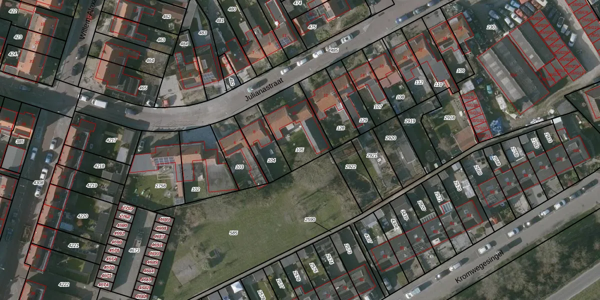 Gebruik de zoekbalk of klik op een perceel om informatie over het perceel te bekijken.