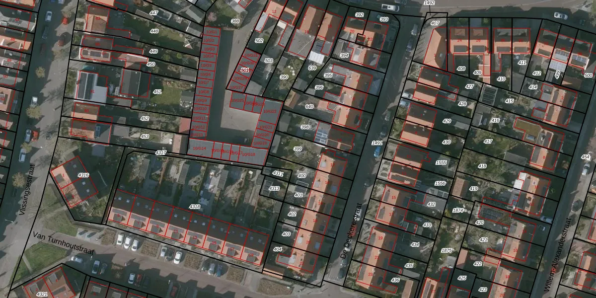 Gebruik de zoekbalk of klik op een perceel om informatie over het perceel te bekijken.