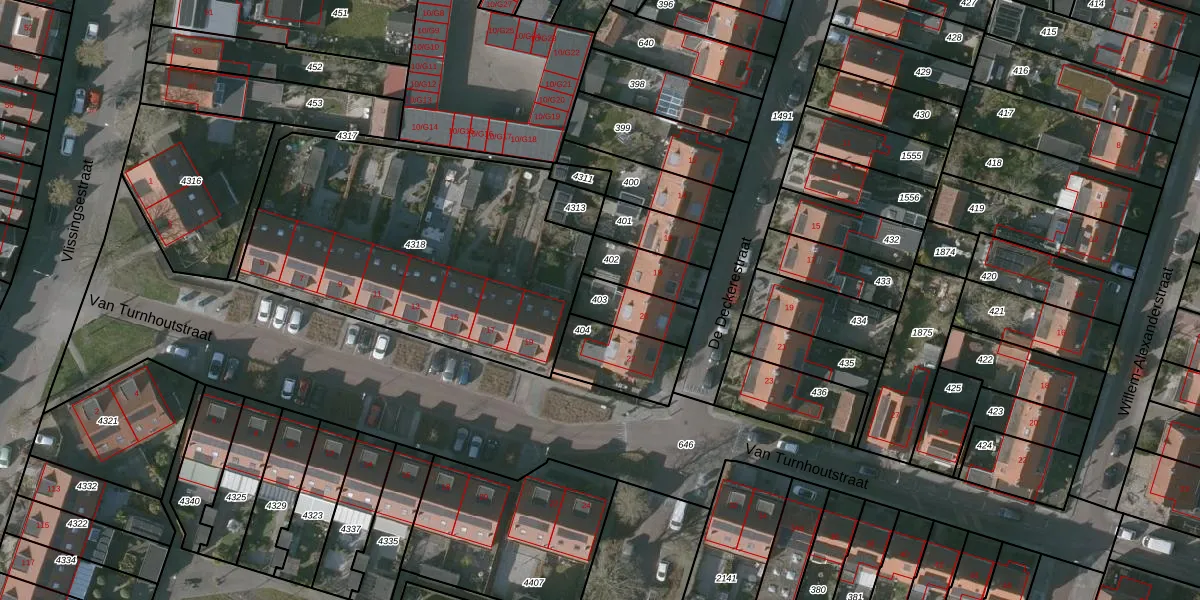 Gebruik de zoekbalk of klik op een perceel om informatie over het perceel te bekijken.