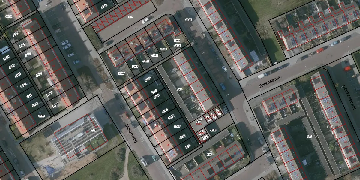 Gebruik de zoekbalk of klik op een perceel om informatie over het perceel te bekijken.