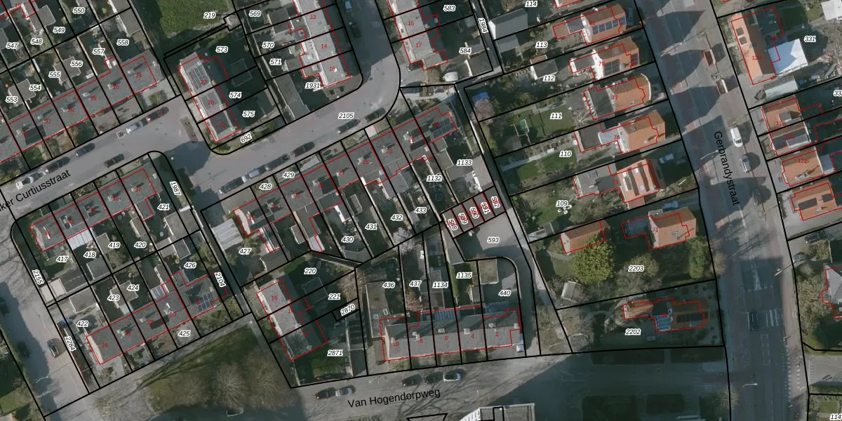 Gebruik de zoekbalk of klik op een perceel om informatie over het perceel te bekijken.