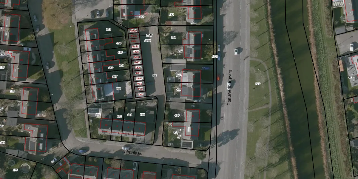 Gebruik de zoekbalk of klik op een perceel om informatie over het perceel te bekijken.
