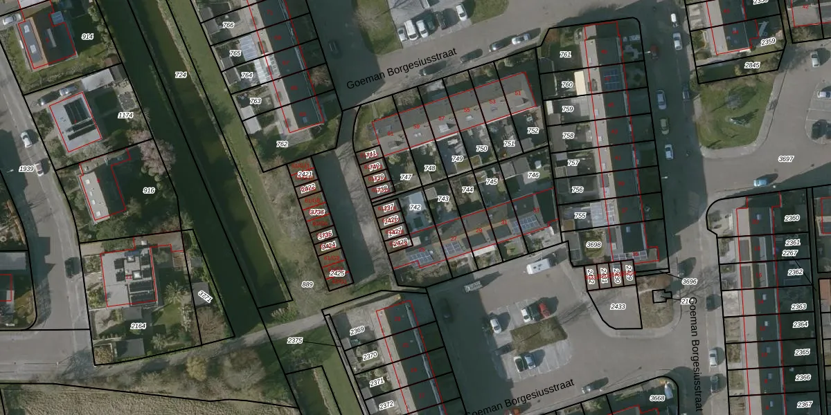 Gebruik de zoekbalk of klik op een perceel om informatie over het perceel te bekijken.