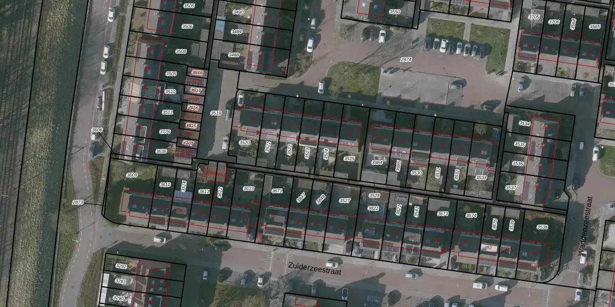 Gebruik de zoekbalk of klik op een perceel om informatie over het perceel te bekijken.