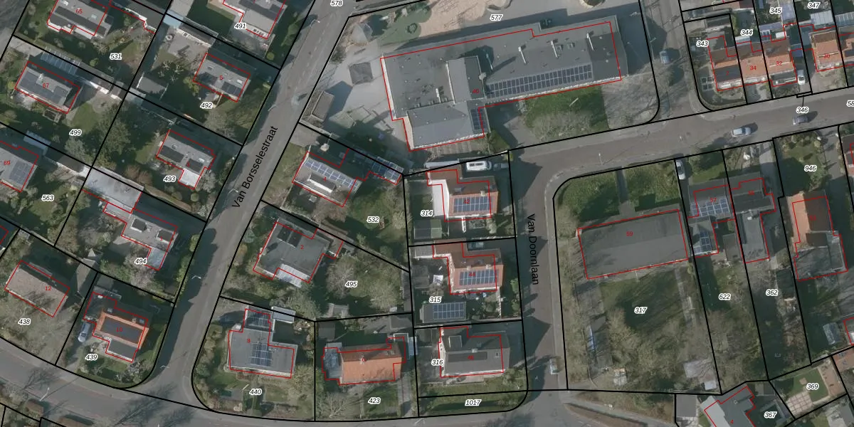 Gebruik de zoekbalk of klik op een perceel om informatie over het perceel te bekijken.