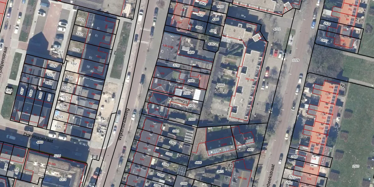 Gebruik de zoekbalk of klik op een perceel om informatie over het perceel te bekijken.