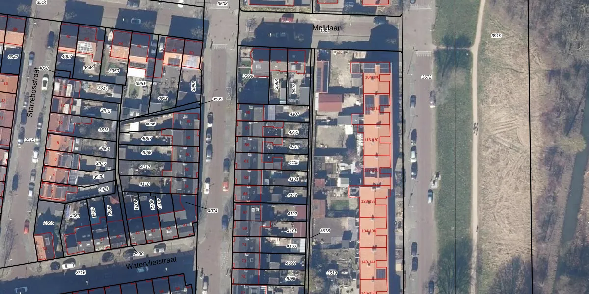 Gebruik de zoekbalk of klik op een perceel om informatie over het perceel te bekijken.