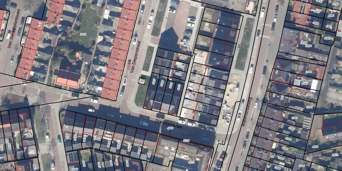 Gebruik de zoekbalk of klik op een perceel om informatie over het perceel te bekijken.