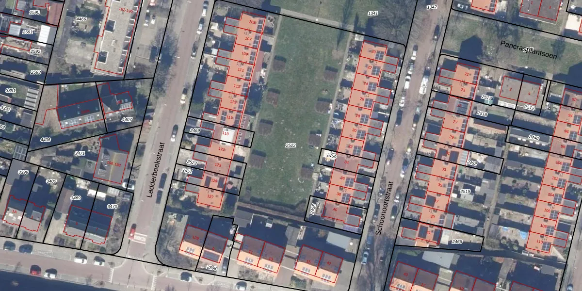 Gebruik de zoekbalk of klik op een perceel om informatie over het perceel te bekijken.