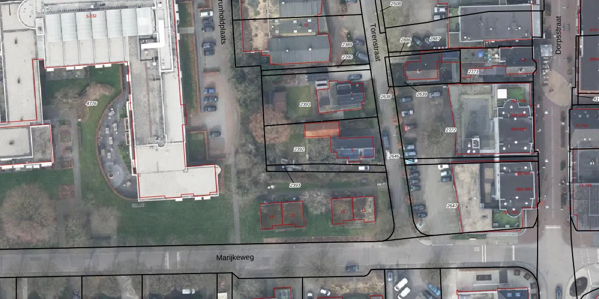 Gebruik de zoekbalk of klik op een perceel om informatie over het perceel te bekijken.
