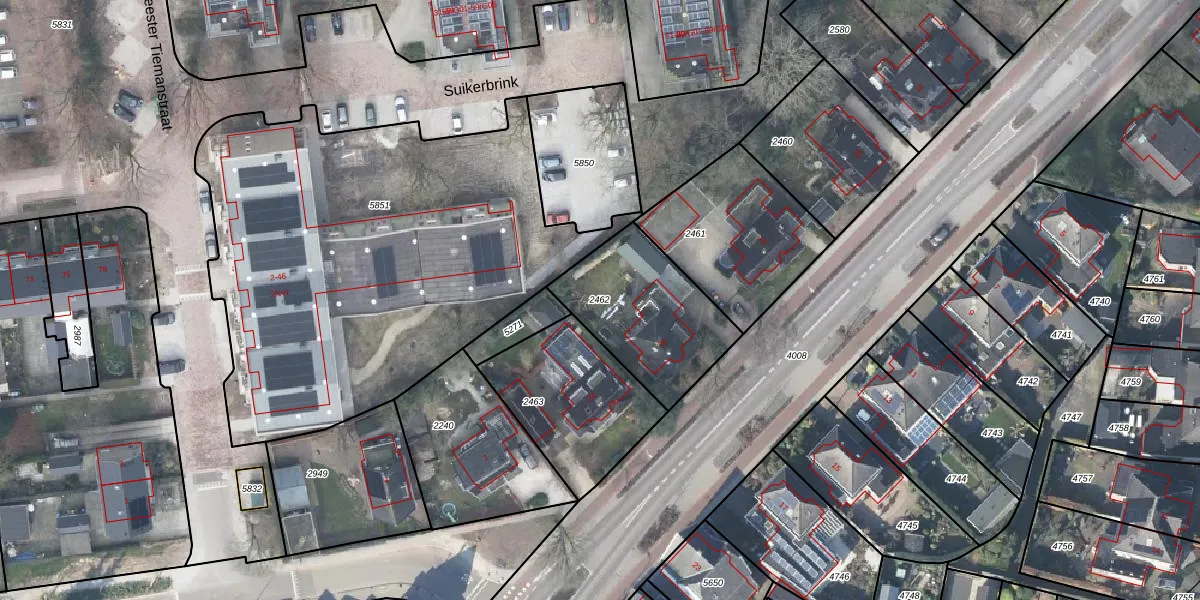 Gebruik de zoekbalk of klik op een perceel om informatie over het perceel te bekijken.