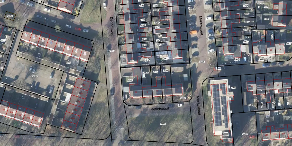 Gebruik de zoekbalk of klik op een perceel om informatie over het perceel te bekijken.