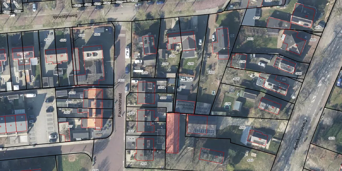 Gebruik de zoekbalk of klik op een perceel om informatie over het perceel te bekijken.