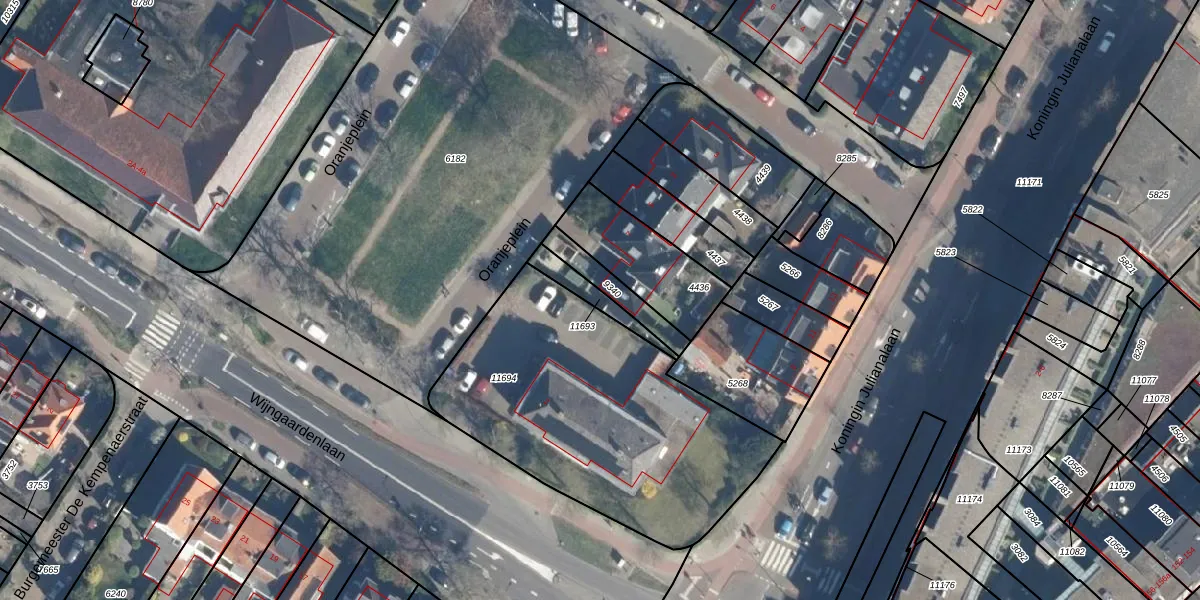Gebruik de zoekbalk of klik op een perceel om informatie over het perceel te bekijken.