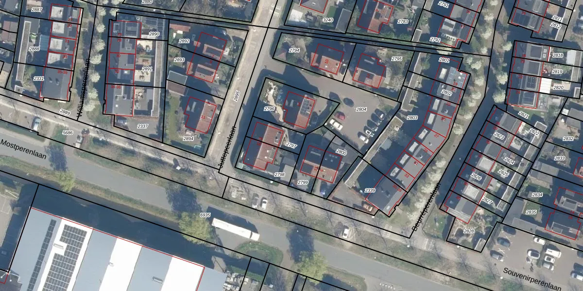 Gebruik de zoekbalk of klik op een perceel om informatie over het perceel te bekijken.