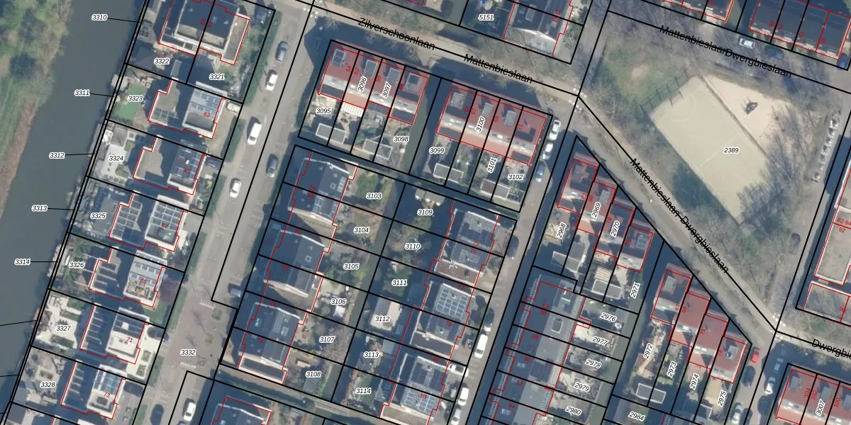 Gebruik de zoekbalk of klik op een perceel om informatie over het perceel te bekijken.
