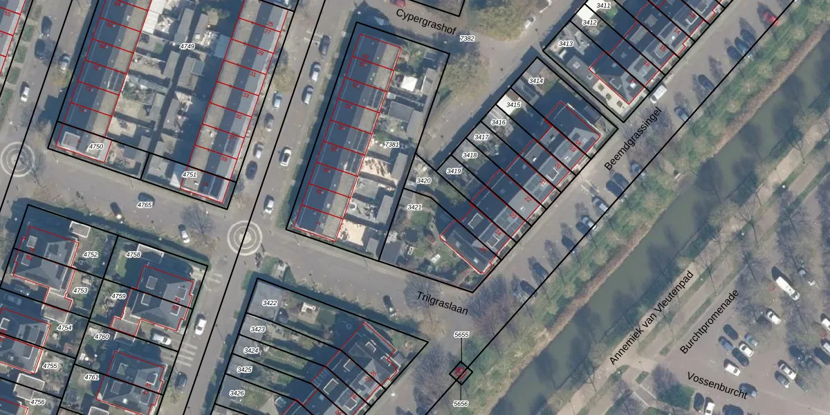 Gebruik de zoekbalk of klik op een perceel om informatie over het perceel te bekijken.