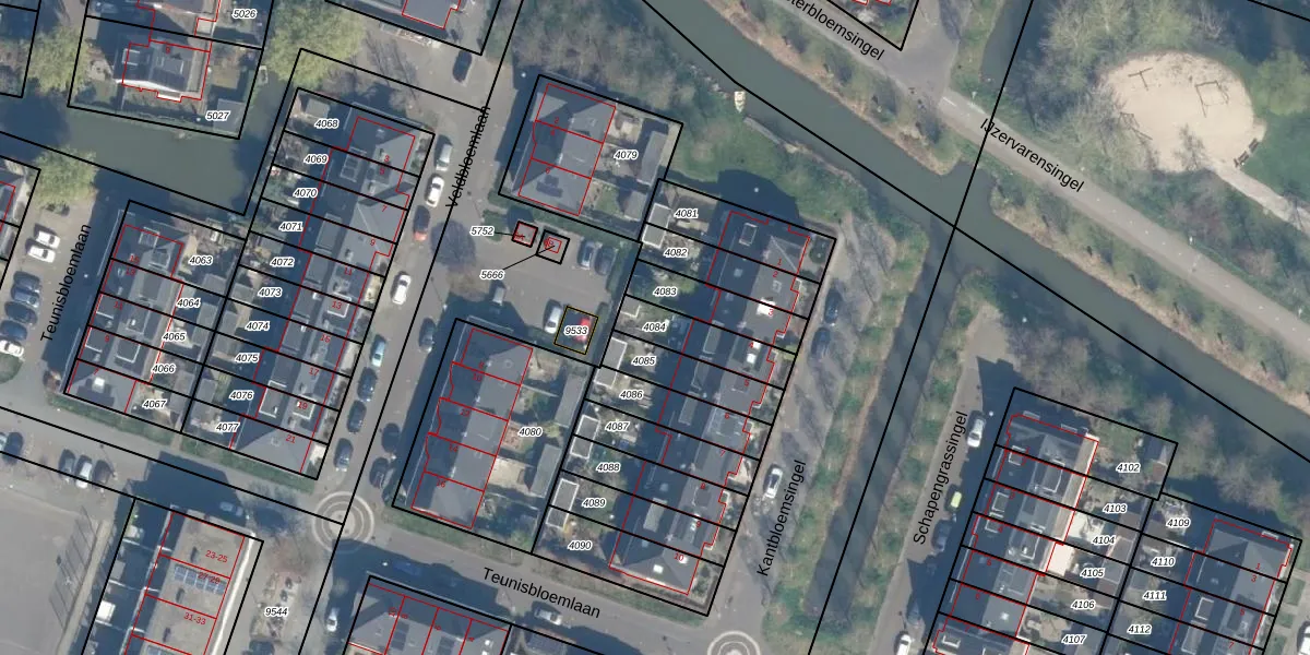 Gebruik de zoekbalk of klik op een perceel om informatie over het perceel te bekijken.