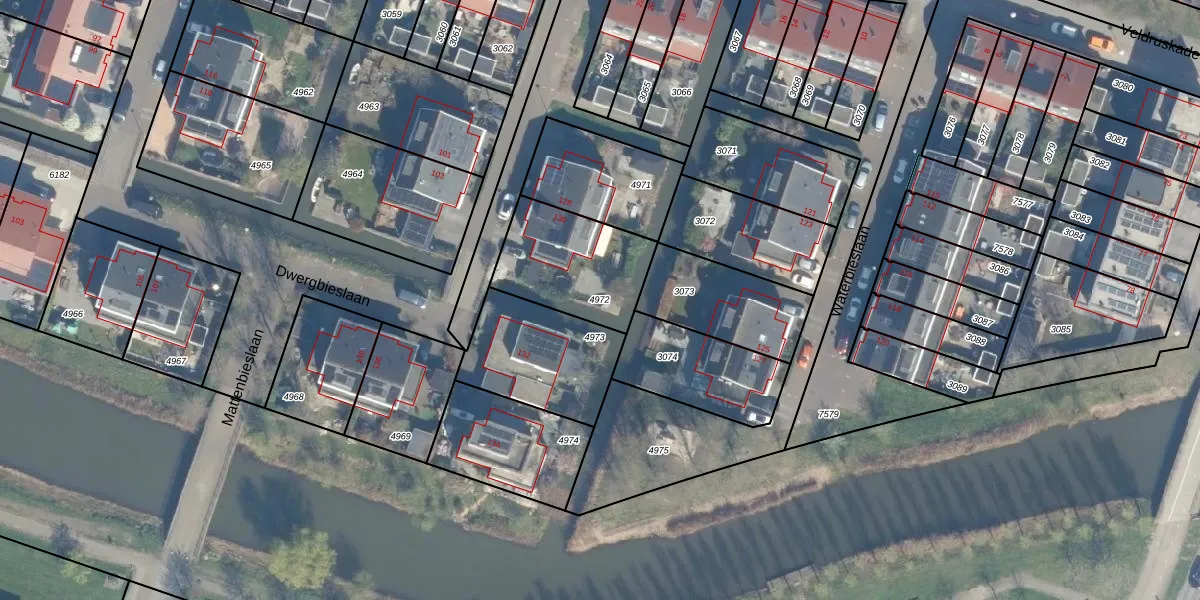 Gebruik de zoekbalk of klik op een perceel om informatie over het perceel te bekijken.