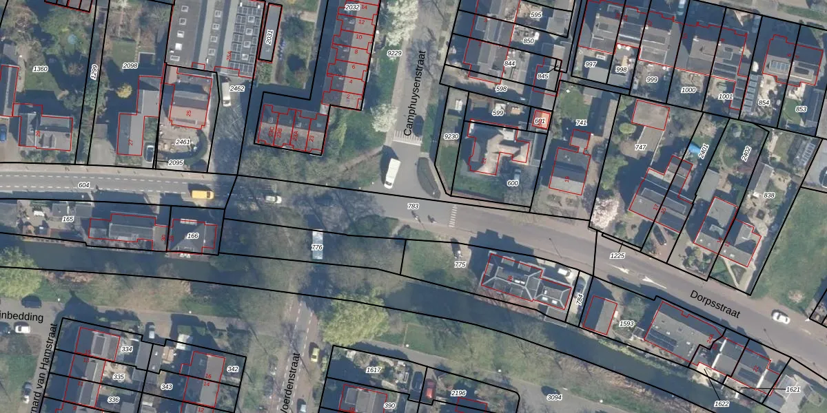 Gebruik de zoekbalk of klik op een perceel om informatie over het perceel te bekijken.