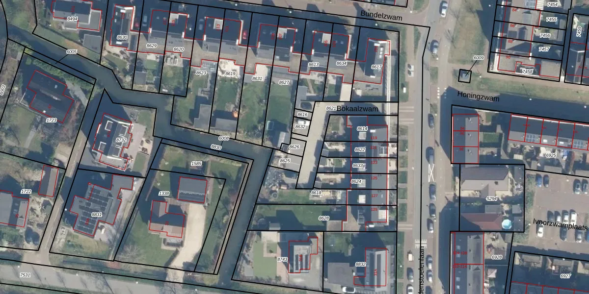 Gebruik de zoekbalk of klik op een perceel om informatie over het perceel te bekijken.