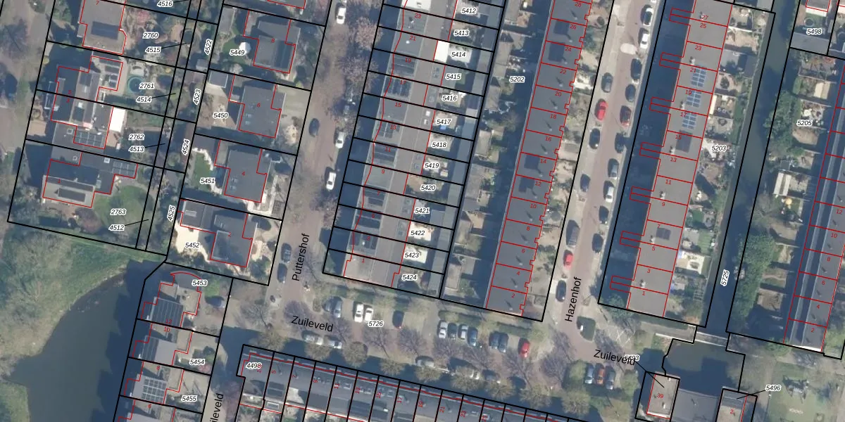 Gebruik de zoekbalk of klik op een perceel om informatie over het perceel te bekijken.