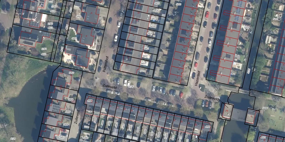 Gebruik de zoekbalk of klik op een perceel om informatie over het perceel te bekijken.