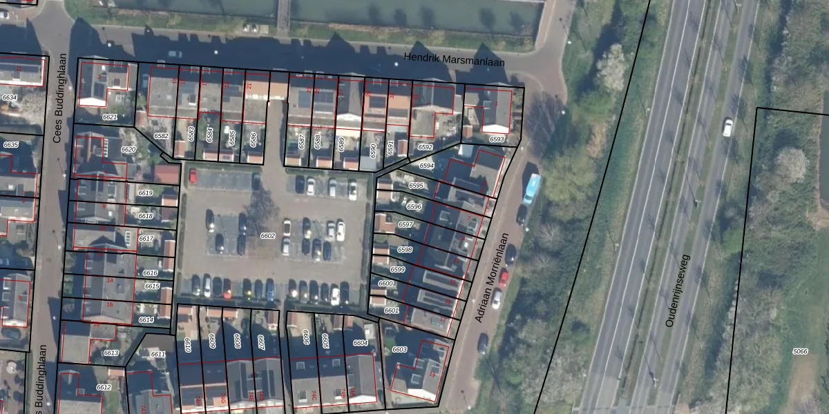 Gebruik de zoekbalk of klik op een perceel om informatie over het perceel te bekijken.