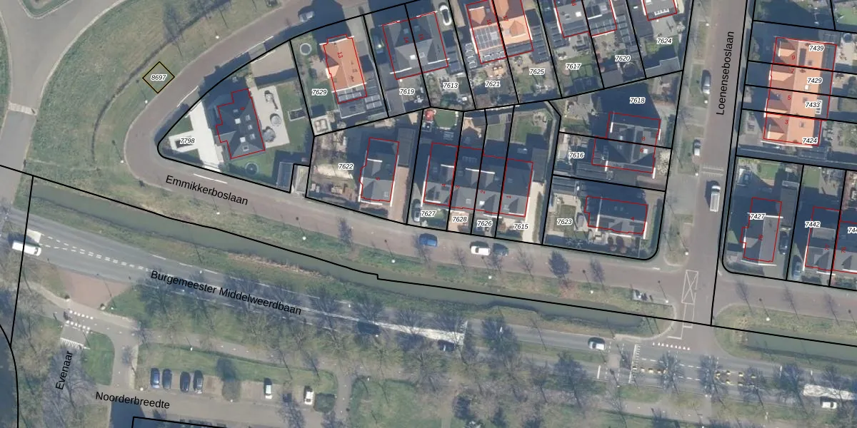 Gebruik de zoekbalk of klik op een perceel om informatie over het perceel te bekijken.