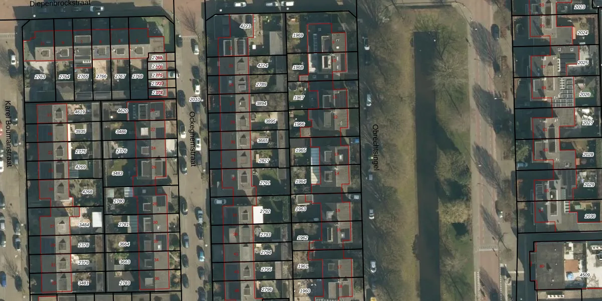Gebruik de zoekbalk of klik op een perceel om informatie over het perceel te bekijken.