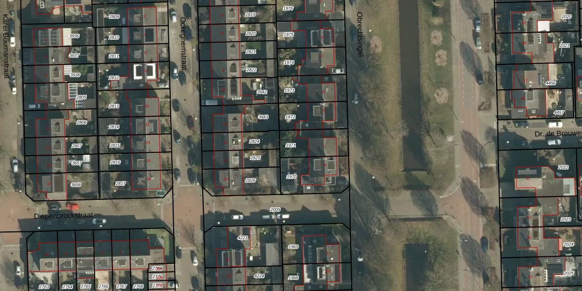 Gebruik de zoekbalk of klik op een perceel om informatie over het perceel te bekijken.