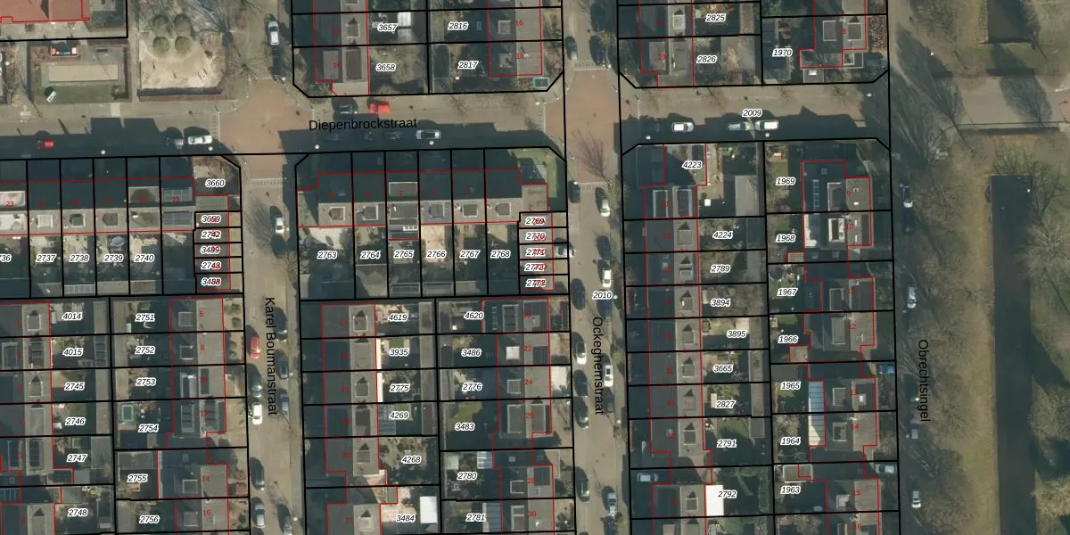 Gebruik de zoekbalk of klik op een perceel om informatie over het perceel te bekijken.