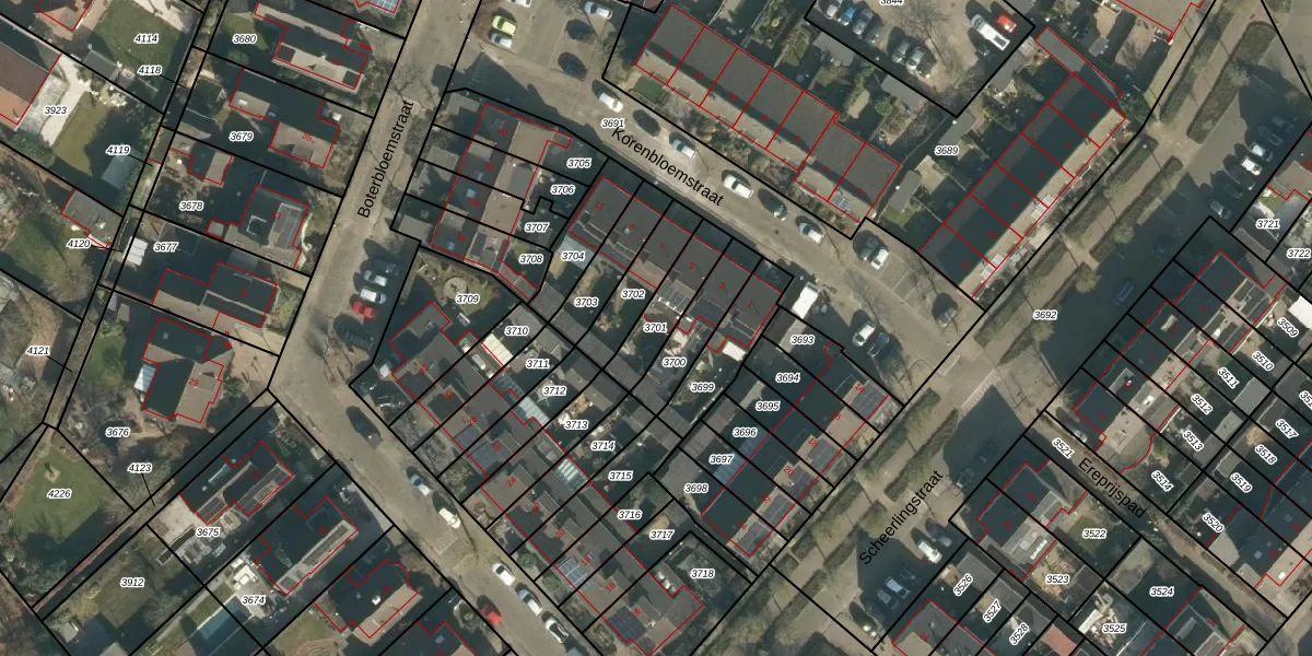 Gebruik de zoekbalk of klik op een perceel om informatie over het perceel te bekijken.