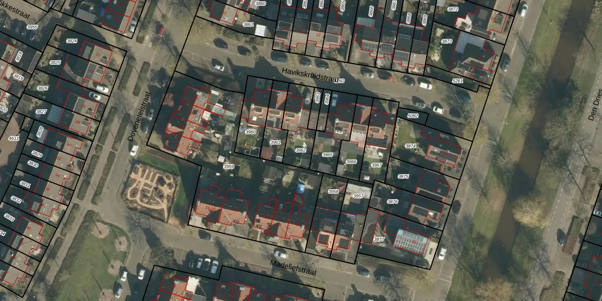 Gebruik de zoekbalk of klik op een perceel om informatie over het perceel te bekijken.