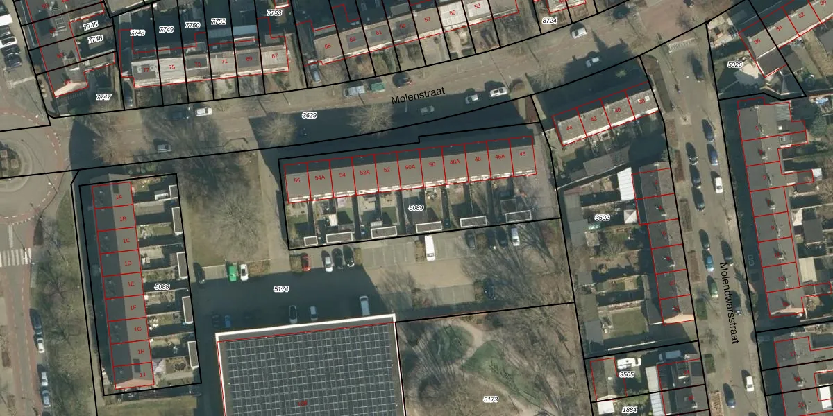 Gebruik de zoekbalk of klik op een perceel om informatie over het perceel te bekijken.