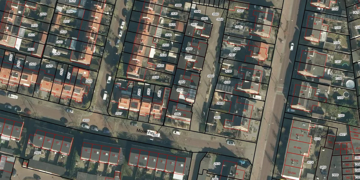 Gebruik de zoekbalk of klik op een perceel om informatie over het perceel te bekijken.