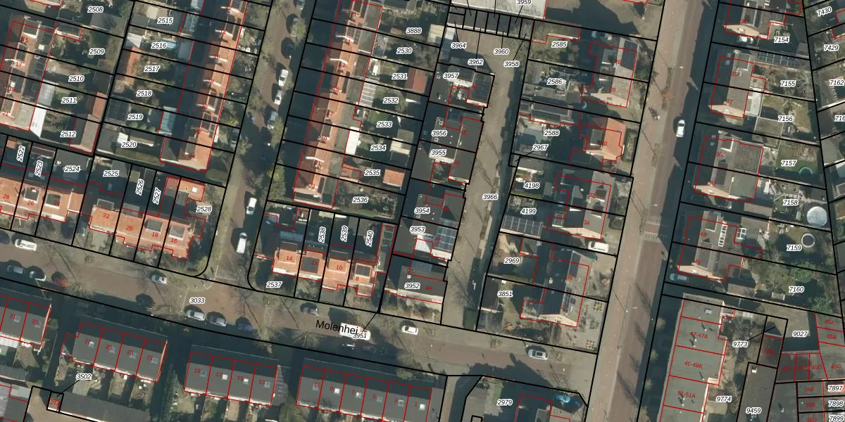Gebruik de zoekbalk of klik op een perceel om informatie over het perceel te bekijken.